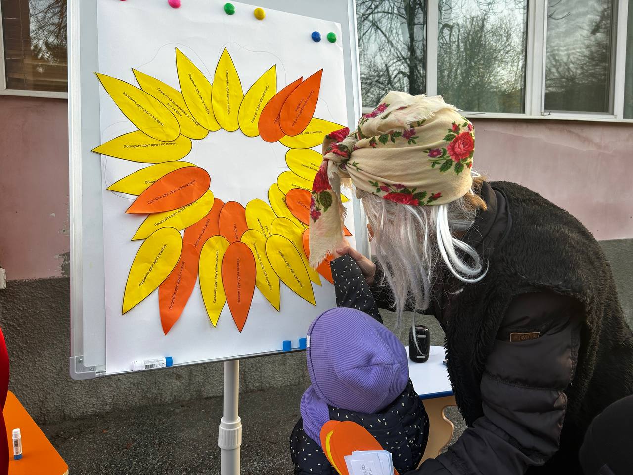 Так же во время акции проходила игра с заданиями «Цветик-семицветик». Выполняя его, дети и родители обнимались, говорили друг другу хорошие слова и многое другое, что положительно влияет на хорошее настроение и взаимоотношения в семье!