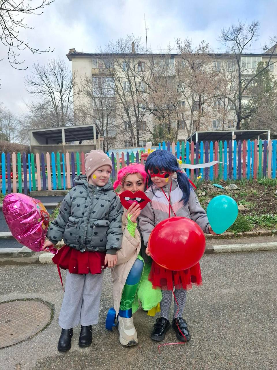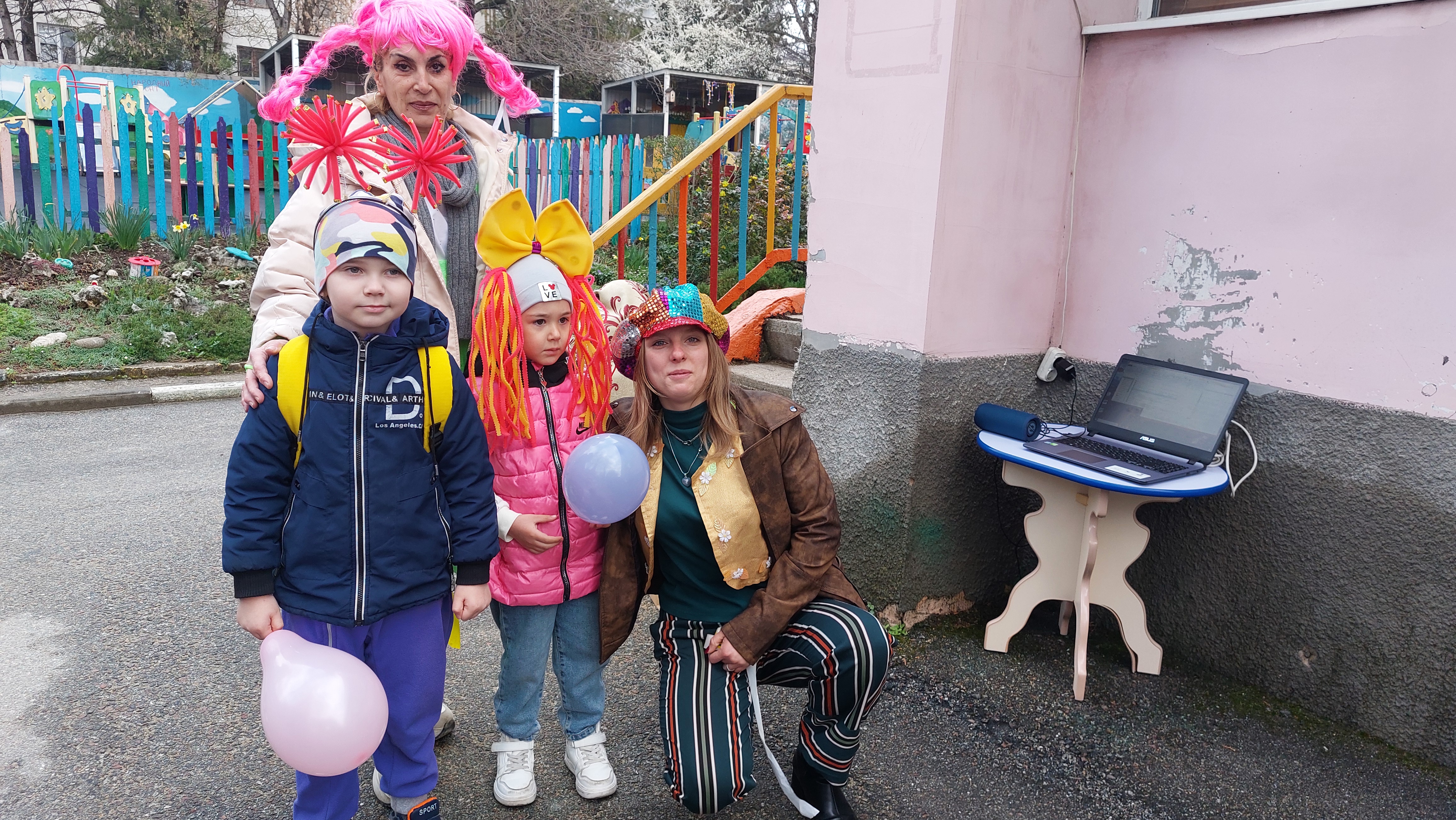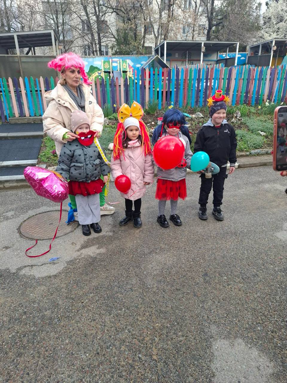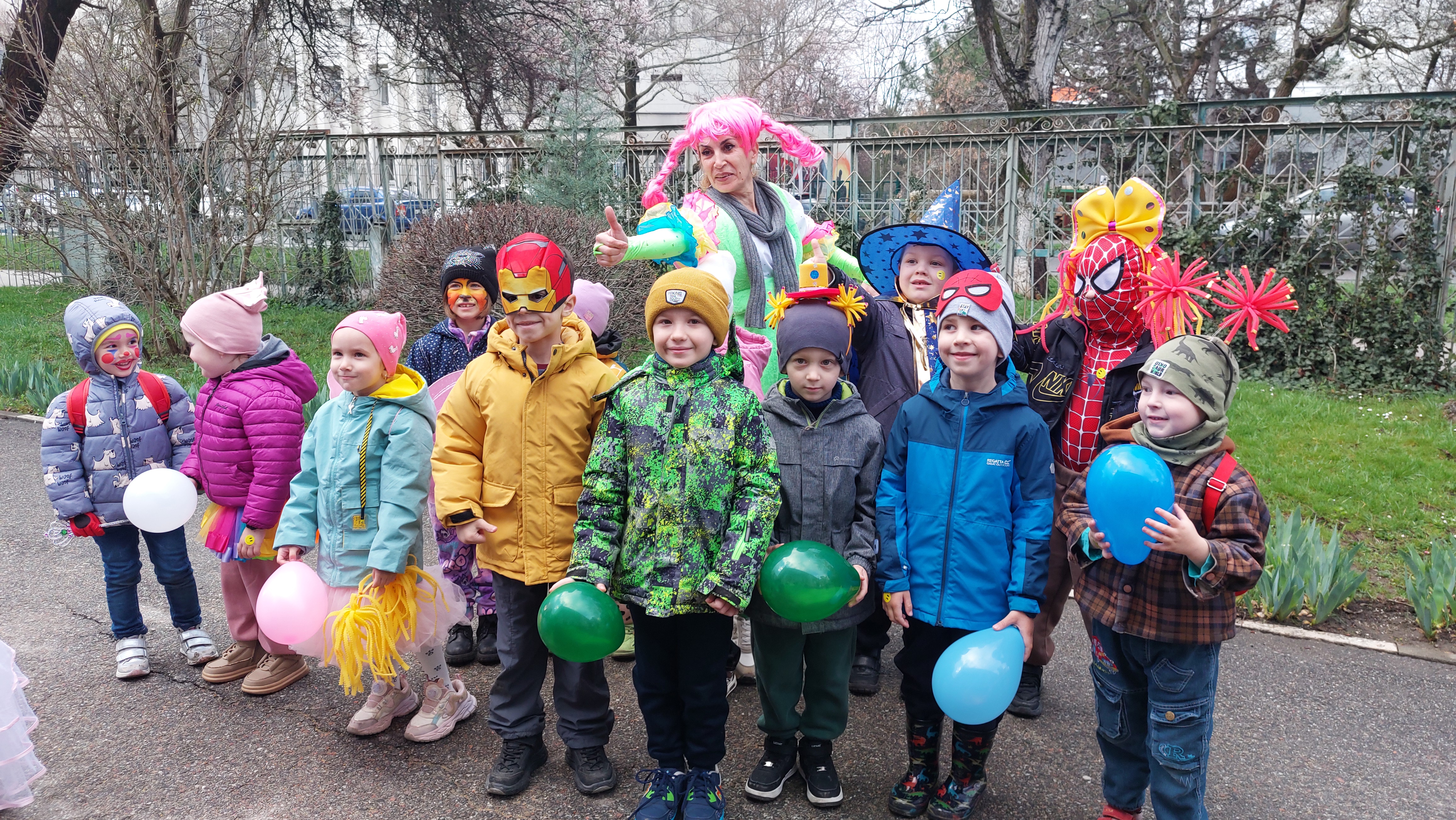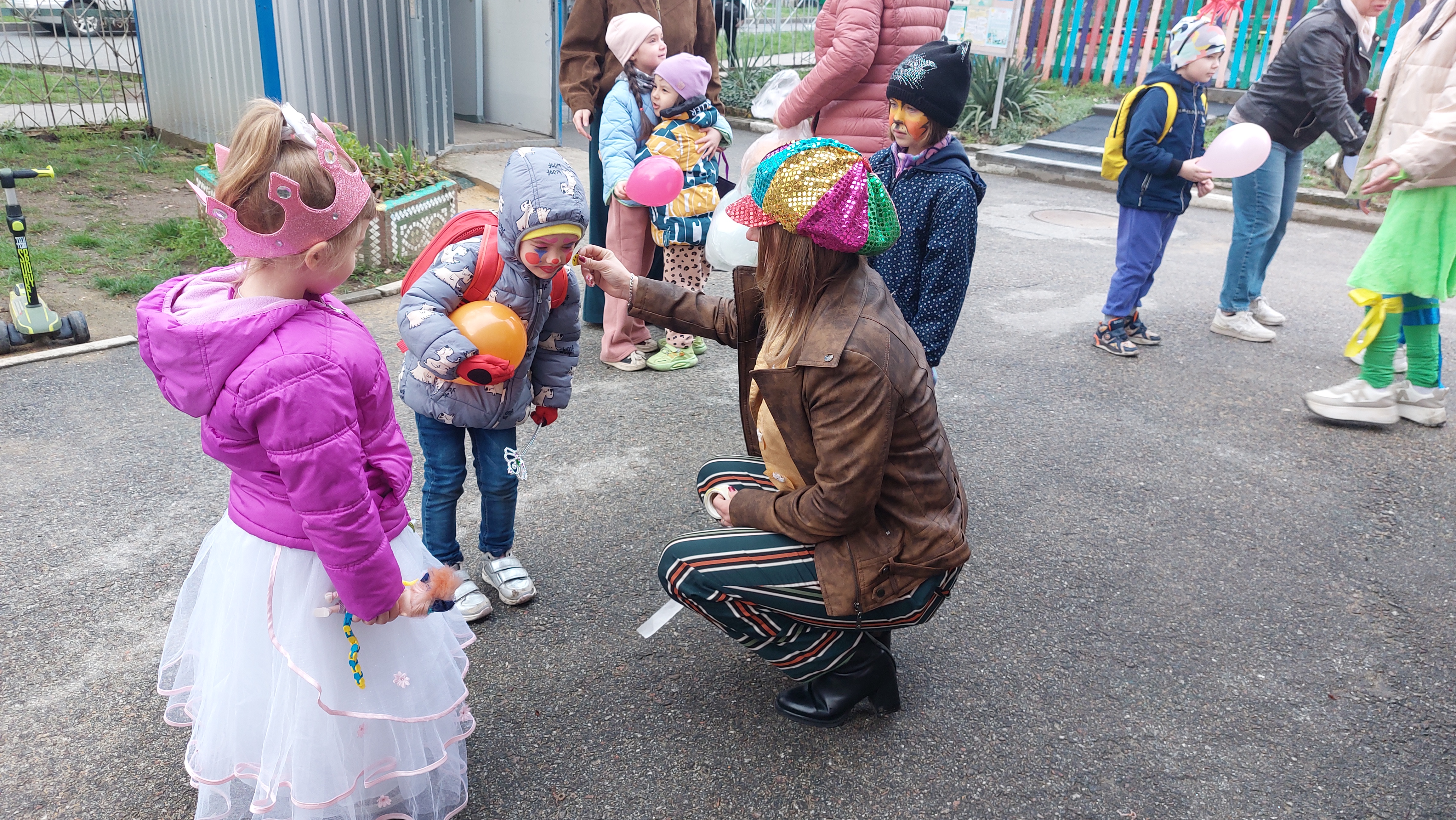 Мероприятие прошло с музыкой, шуточными атрибутами для фотосессии, яркими наклейками и воздушными шарами для каждого ребенка, танцами с задорными клоунами.
